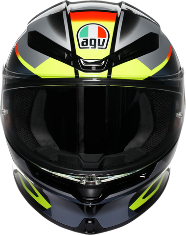 Wind protector included, Double D retention system, Shell, 5-density EPS, Carbon-Aramid fiber, Collarbone safe profile, Ventilation, One wide rear extractor and five front vents, Adjustable air vents, Aerodynamics, Shell shape designed to reduce turbulence, Integrated spoiler, Optimized for all riding positions, Interior, 2Dry: instant sweat absorption, Cheek pads safety release system, Ritmo fabric cheek pads to facilitate putting on/taking off the helmet, with cheekbone area in Shalimar fabric to ensure stability at high speed, Fit especially designed to allow wearing glasses, Embracing neck roll profile, Shalimar fabric crown pad for a soft and gentle touch, Microsense: premium skin comfort, Ritmo fabric neck roll and synthetic leather with high abrasion resistance and water-resistant properties, Removable nose guard, Removable and washable interiors