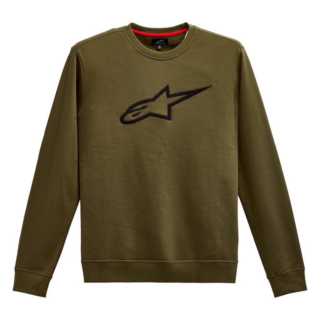 Ageless Crew Fleece - Military/Black - XL Front Alpinestars embroidered chest logo, Ribbed cuffs and hem, Internal main label and external label branding, Content: 80% Cotton / 20% Polyester