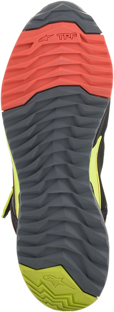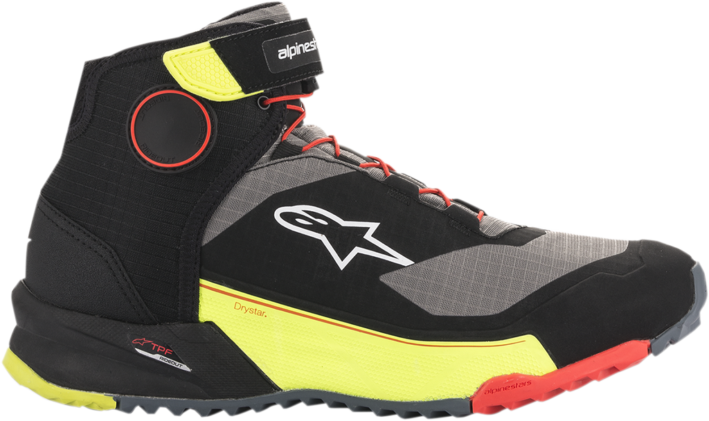 Drystar® membrane offers effective weather protection in wet conditions, The sole unit ‘DROP’ (or, the off-set between heel and toe) is set at 9 mm (many running shoes have a 9 mm drop) to ensure a smooth heel-to-toe transition when walking, Features an EVA midsole provides for excellent all-day underfoot comfort, Forefoot Flex grooves are engineered into the midsole for enhanced forefoot comfort (the grooves promote flexing in the forefoot area), Full-length TPU inner sole plate for superior riding protection and a dynamic heel-to-toe transition when walking, Asymmetric outsole stud configuration provides excellent levels of grip and abrasion resistance, Oil resistant dual rubber compound provides optimized grip on unclean/slippery surfaces, Removable Ortholite insock provides long lasting comfort and prevents over heating thanks to the Open Cell PU compound, Hidden asymmetric lateral and medial TPU ankle discs for effective but discreet ankle protection, Lightweight inner bootie with minimal construction design for a comfortable, glove-like fit, Tongue with bellows construction has been designed to remain in position when riding for a snug, secure fit, Gear shift zone features a highly abrasive-resistant TPU layer for enhanced durability, Internal EVA layer sandwiched between outer and inner materials reduces pressure on the foot in the gear shift area, thus ensuring superior rider comfort