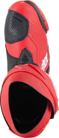 Advanced microfiber upper construction for lightweight high performance protection and superb levels of flexibility, Front flex area is constructed with a soft microfiber for improve abrasion resistance and natural forwards and backwards movement , TPU for breathability and airflow, Flexible accordion microfiber on Achilles gives enhanced natural movement , Strategically positioned ventilation area in heel and shin, Outside entry/exit has stretchable accordion panel for a close fit and ease of entry and removal, Contoured high modulus shin plate protector gives superior impact and abrasion resistance , An evolution of Alpinestars unique Multi-Link Control system provides advanced external protection and support for ankle articulation, limiting hyper-torsion, hyper-extension and hyper-flexion as well as providing Achilles impact protection. , Dual density TPU replaceable toe slider with screw-in assembly provides protective coverage around the outer toe area , Wide heel counter with lateral ventilation extends to the ankle and is combined with a shock absorbing padded insert and self-molding ankle reinforcement, Replaceable heel slider and external side heel slider are positioned to dissipate and absorb shock and promote sliding during an accident , Large front and rear asymmetrical accordion zones are optimized to maximize flexibility , Advanced synthetic forefoot lining, laminated with open cell foam for shock absorption and highly breathable lining in ankle and leg areas for comfort, Micro adjustable ratchet top closure stows tab end, Alpinestars anatomical and replaceable countered EVA footbed provides arch support and forefoot pedal feeling , Durable sole, designed for improved riding feel, features evenly textured rubber for consistent grip , Alpinestars Lace-Lock System is constructed from an advanced polymer resin to guarantee a quick, precise and secure closure, Inner instep speed lacing closure and unique lateral zipper offer precise and secure fit, Hook and loop tap locks the zip pull close, keeping in flat and safe