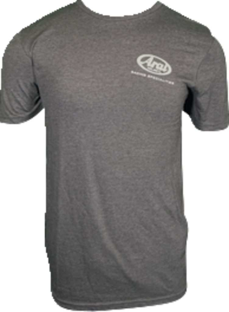 Arai Helmet T-Shirt - Dark Heather Gray - Medium Graphics with white print on front and back of t-shirt