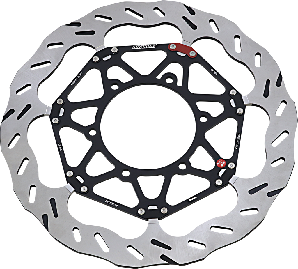 Designed with input from Braking's working experience with best teams in most important competitions in the world (SBK and SS), The braking track ensures a better heat dissipation, ensuring a steady friction coefficient, The new connection structure allows a more controlled radial axial play, with a better load transfer between the braking track and the carrier, Thermal design optimized, Maximum weight-to-performance ratio, Consistent disc temperature, Absence of heat spots, Direct load transfer between rotor and hub, No pin deformation due to applied load