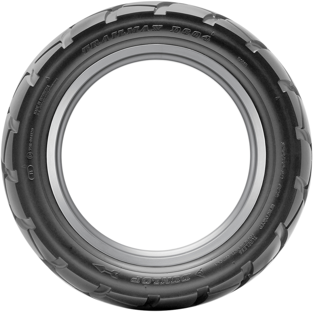 The Dunlop D604 Rear Motorcycle Tire, part number 45215531, offers versatile performance designed for both highway cruising and off-road adventures. Engineered to provide a reliable grip on a variety of terrains, this tire is well-suited for riders seeking durability and stability across different riding conditions. With a size of 130/70-12 and a load index of 62L, it ensures a comfortable and secure ride whether on paved roads or gravel and fire roads. Its construction emphasizes longevity and consistent handling, making it a popular choice among motorcyclists who demand versatility from their tires. The tire*s design incorporates features that enhance traction and stability, providing confidence during high-speed highway travel and off-road excursions alike. Its L-rating allows for speeds up to 74 mph, making it suitable for a wide range of riding scenarios. Whether commuting or exploring backcountry trails, the Dunlop D604 rear tire delivers dependable performance and durability to meet the demands of diverse terrains and riding styles.