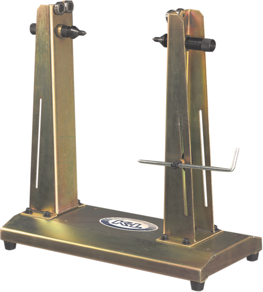 Balances and trues all 14" to 21" motorcycle wheels, Wheels mount to adjustable center cones or ball bearings for trueing and static balancing, Adjustable frame rails accommodate wide rims and wheels