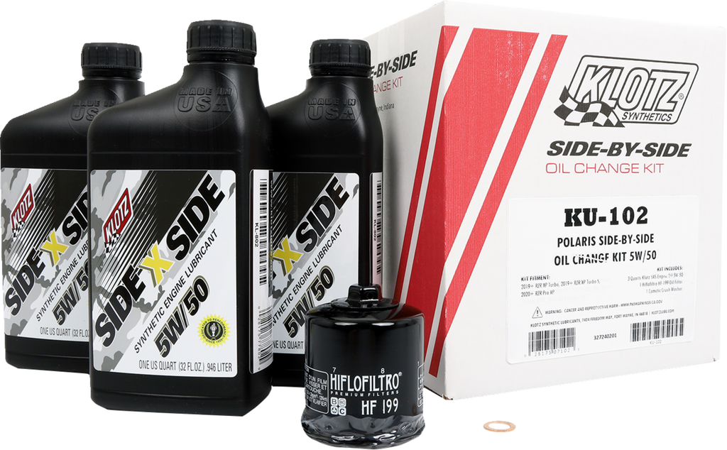 Klotz? V-Twin Oil Change Kit comes with just the right amount of lubricant, no more no less, Formulations are optimized specifically for 4-Stroke SxS hardware