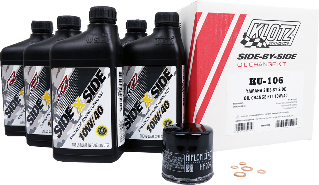 Yamaha SxS - 10W/40 Klotz? V-Twin Oil Change Kit comes with just the right amount of lubricant, no more no less, Formulations are optimized specifically for 4-Stroke SxS hardware