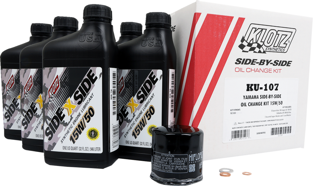 Klotz? V-Twin Oil Change Kit comes with just the right amount of lubricant, no more no less, Formulations are optimized specifically for 4-Stroke SxS hardware