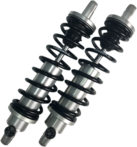 Improved plush ride quality, control, and resistance to bottoming out, Extended coil length has a larger “sweet spot” without increasing the overall shock length, Unique spring rate offers ability to soften preload and/or reduce ride height while maintaining a smooth ride, Allows minimal preload adjustments when changing between rider weight or total motorcycle load, Easy to adjust preload by hand without tools, Hard anodized machined aluminum body, Legend’s low-friction seals, High-flow piston reacts quickly for improved fluid flow management, Deflective disc valved damping self adjusts to frequency and ensures controlled performance, Spherical mount bearings on top and bottom, Standard or heavy-duty spring rates, Black bodies with black springs six external knob adjustments that allow fine-tuning of rebound damping, Provides optimum rebound performance for any given rider weight, personal ride quality preference or personal riding style, Aggressive to casual riding styles can tune to desired quality or personal preference, All Legend REVO suspension is assembled by hand, Sold in pairs, Made in the U.S.A., OEM Part Number 5466-08 (2), 7880 (2), and 8185 (2) are required for '91-'05 models., 14" Revo requires short exhaust, Heavy Duty application is recommended for 250lb.+ rider and passenger total weight. Consider Heavy Duty if the majority of your riding is 2-up, stunt ridings, or aggressive riding style.