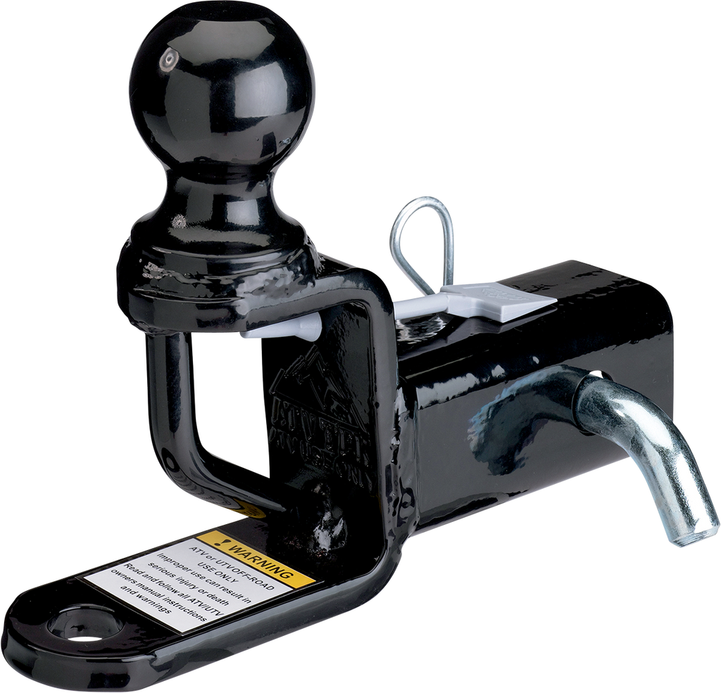 Welded-on 2" ball on a 3" rise, Reinforced tow loop/tie-down point and clevis-pin hole, Quiet Tek wedge reduces hitch rattle, Trio Receiver accepts standard accessories, C-channel design ensures maximum strength, Mounting hardware and hitch pin included