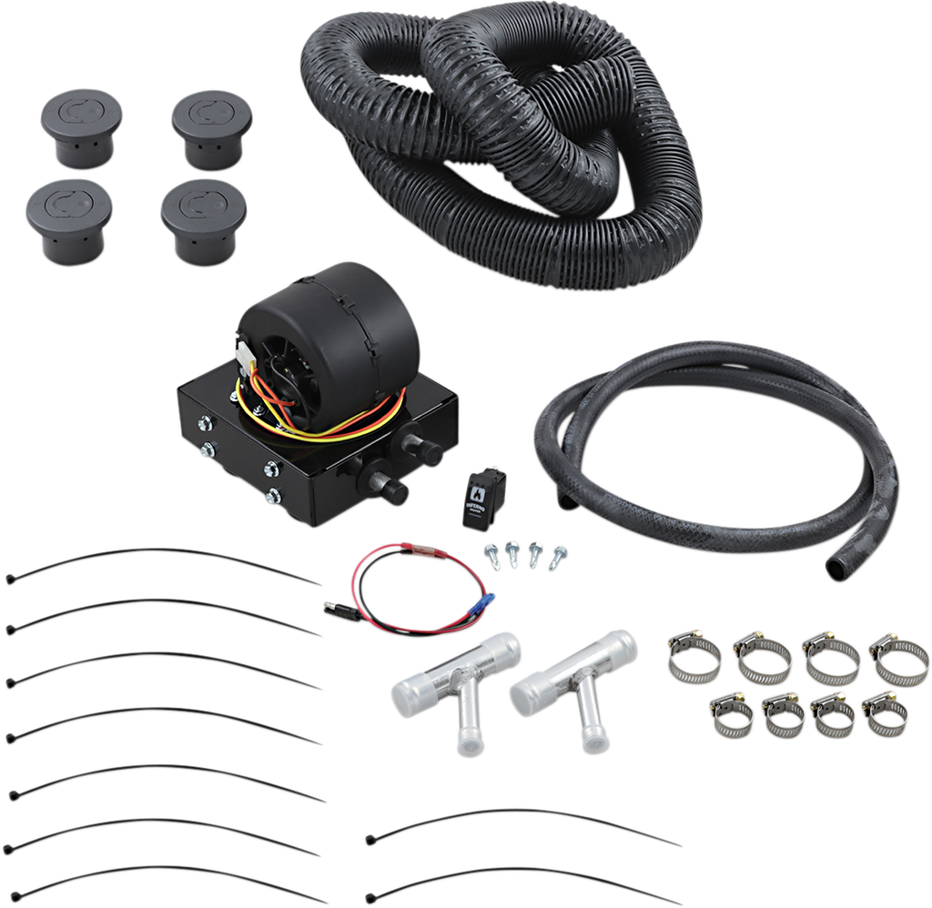 Water Operated cab heater for enclosed UTV's, 16,000 BTU units is direct-fit to the machine with core hidden from sight to prevent taking up cab space, Includes a heater hose, hose splicers, hose clamps, rocker switch, necessary wiring, and mounting bolts as needed, Quick and easy installation, Made in the U.S.A.