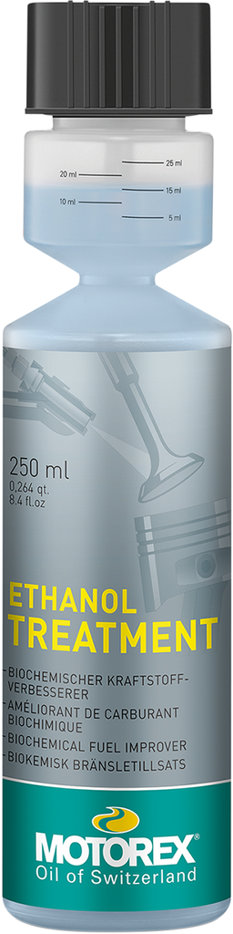 Biochemical fuel enhancer, Improves properties of 2-stroke and 4-stroke fuels blended with ethanol, Reduces phase separation and optimizes combustion, Increases fuel efficiency while protecting against corrosion, Stabilizes fuel for at least one year, One bottle treats up to 125 gallons, Available in 250mL bottles