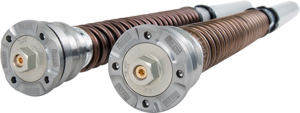 Race-developed and tested in World Superbike, World Supersport and AMA Superbike competition, Improved design features a fork cartridge that uses a sealed, one-cylinder piston chamber that allows oil flow only through the shim stack on the cartridge piston when compressed, Kit uses a larger, 30 mm diameter piston that flows more oil that allows for a wider range of adjustment, This provides immediate suspension response and generates optimal suspension oil pressure all the way through the fork damping sequence, All damping adjustment knobs are at the top of the fork caps for easy suspension tuning (compression on left fork leg, rebound on right leg; both have spring preload adjustment), Easy to tune, For use with OEM fork tubes
