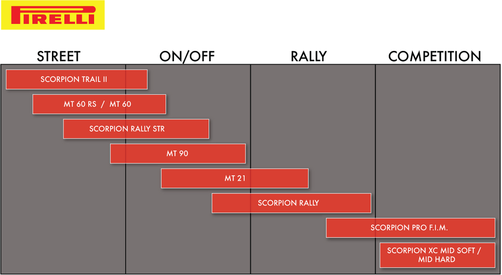 Innovative tread pattern combines the typical off-road style of the Pirelli Scorpion™ range with the experience directly derived from the Angel GT (Pirelli's top sport touring product), Incredible versatility ensures peak performance on long, straight journeys or twisty roads with the most adverse weather conditions, Increased mileage, improved wet grip with an incredible performance consistency throughout its entire life cycle, Central compound developed for higher mileage and improved behavior in wet conditions, Larger center compound stripe to guarantee enhanced cornering performance, Peak performance of enduro and sport touring blended into one product, Side compound for optimized balance between dry and wet performance, High performance for heavy, fully-loaded bikes, Tubeless (TL), Blackwall