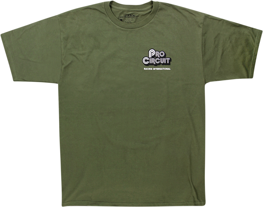 Pit Bike T-Shirt - Green - XL Classic retro look with a Pro Circuit Racing International design printed on the wearer's left chest, and vintage '70s pit bike design on back, Screen-printed with quality inks