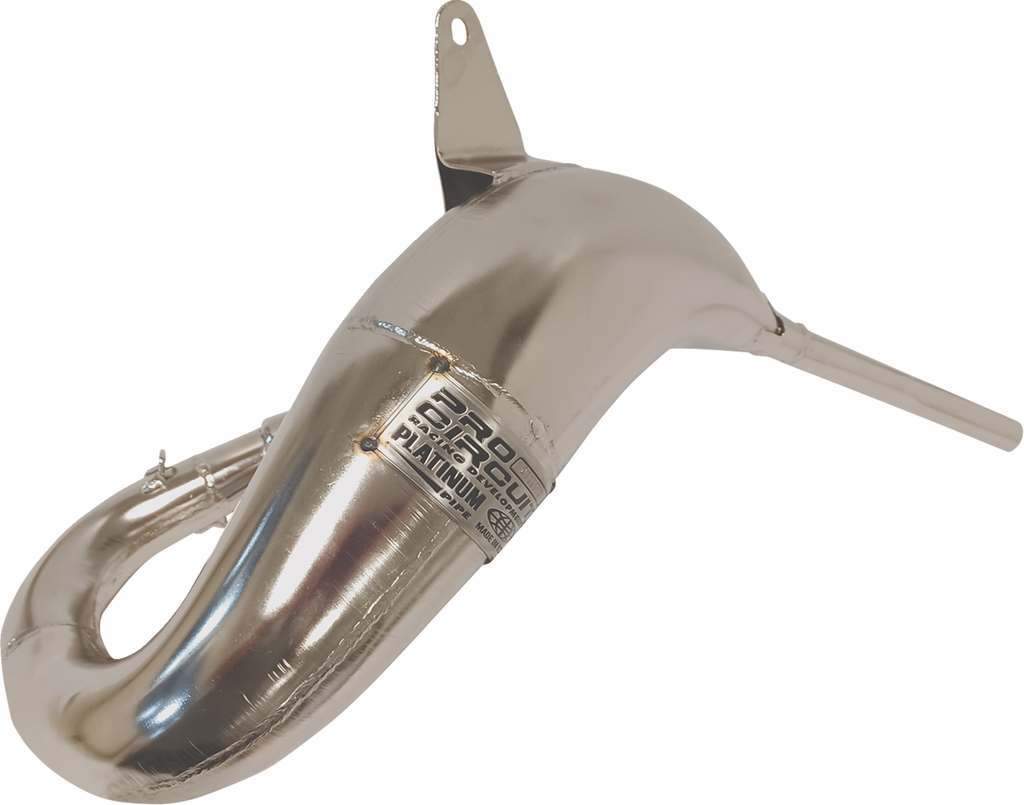 The PRO CIRCUIT Platinum Pipe for Kawasaki KX112 (Part #0822212) is engineered to deliver exceptional performance and durability for off-road motorcycle enthusiasts. Crafted from stamped high-quality carbon steel, this exhaust pipe is designed to withstand demanding riding conditions while maintaining optimal flow and power output. The precision hand-welded and pounded seams ensure a robust construction that resists cracking and deformation over time. Reinforced mounting brackets and a sturdy stinger provide additional strength and stability during intense riding sessions, reducing the risk of failure and enhancing overall reliability. Electroless nickel plating is applied to the pipe's surface, significantly increasing its lifespan by providing corrosion resistance and wear protection, thereby extending the service life by 2 to 10 times compared to untreated components. Made in the USA, this exhaust pipe exemplifies superior craftsmanship and quality control, making it a trusted upgrade for serious riders seeking improved performance and durability. Whether you're racing or riding in rugged terrains, the PRO CIRCUIT Platinum Pipe is designed to meet demanding standards and deliver consistent results across various conditions. Its seamless integration with the Kawasaki KX112 ensures a perfect fit and hassle-free installation, providing immediate performance benefits and peace of mind for riders looking to enhance their motorcycle's capabilities.