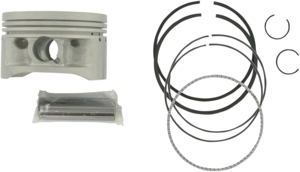 Manufactured in Japan and designed to be OEM replacement, Cast from a high-silicon-content aluminum alloy that meets or exceeds OEM specifications, then CNC-machined to extremely close tolerances, Pistons supplied in a kit package that includes rings, wrist pins and circlips
