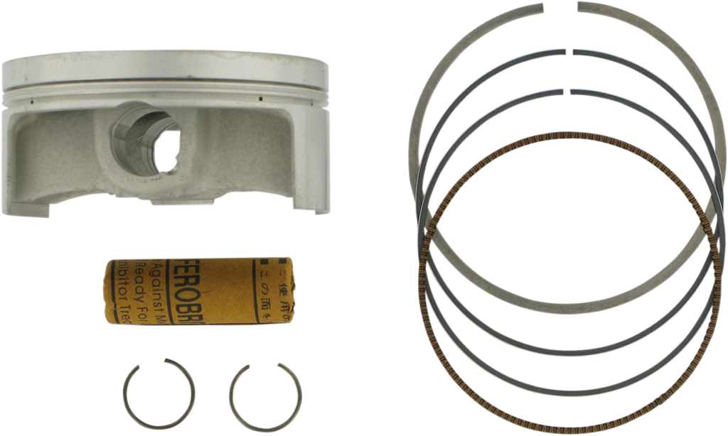 Manufactured in Japan and designed to be OEM replacement, Cast from a high-silicon-content aluminum alloy that meets or exceeds OEM specifications, then CNC-machined to extremely close tolerances, Pistons supplied in a kit package that includes rings, wrist pins and circlips