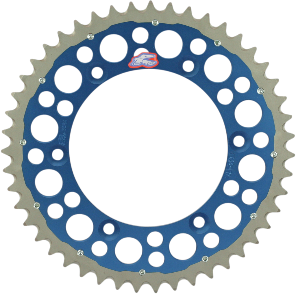 Inner ring is the same high strength Ultralight™ 7075 T-6 aluminum used for the standard Renthal sprocket, Outer ring is electro-less nickel coated steel for ultimate durability and is designed with the minimum amount of material to keep weight down, The outer ring is expanded at 200°C and then fitted over the inner; this interference fit combined with the wave pattern ensures a permanent bond for the life of the chainwheel, The flat socket head screws add additional strength to the chainwheel during side impacts and eliminates contact with the chain guide, Self cleaning mud grooves between each tooth prevent dirt build upand reduce chainwheel wear and weight, Will outlast a standard all aluminum sprocket by 3 times, yet is much lighter than an all steel rear sprocket