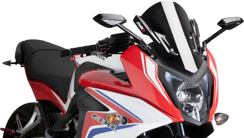 - Racing screens utilize a double height that keeps wind buffeting to a minimum